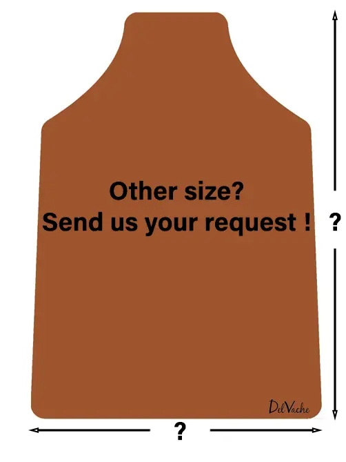 En plus de nos tabliers sans badge ni personnalisation, ainsi que de nos tabliers avec badge DelVache, nous proposons trois types de personnalisations à l’avant du tablier.